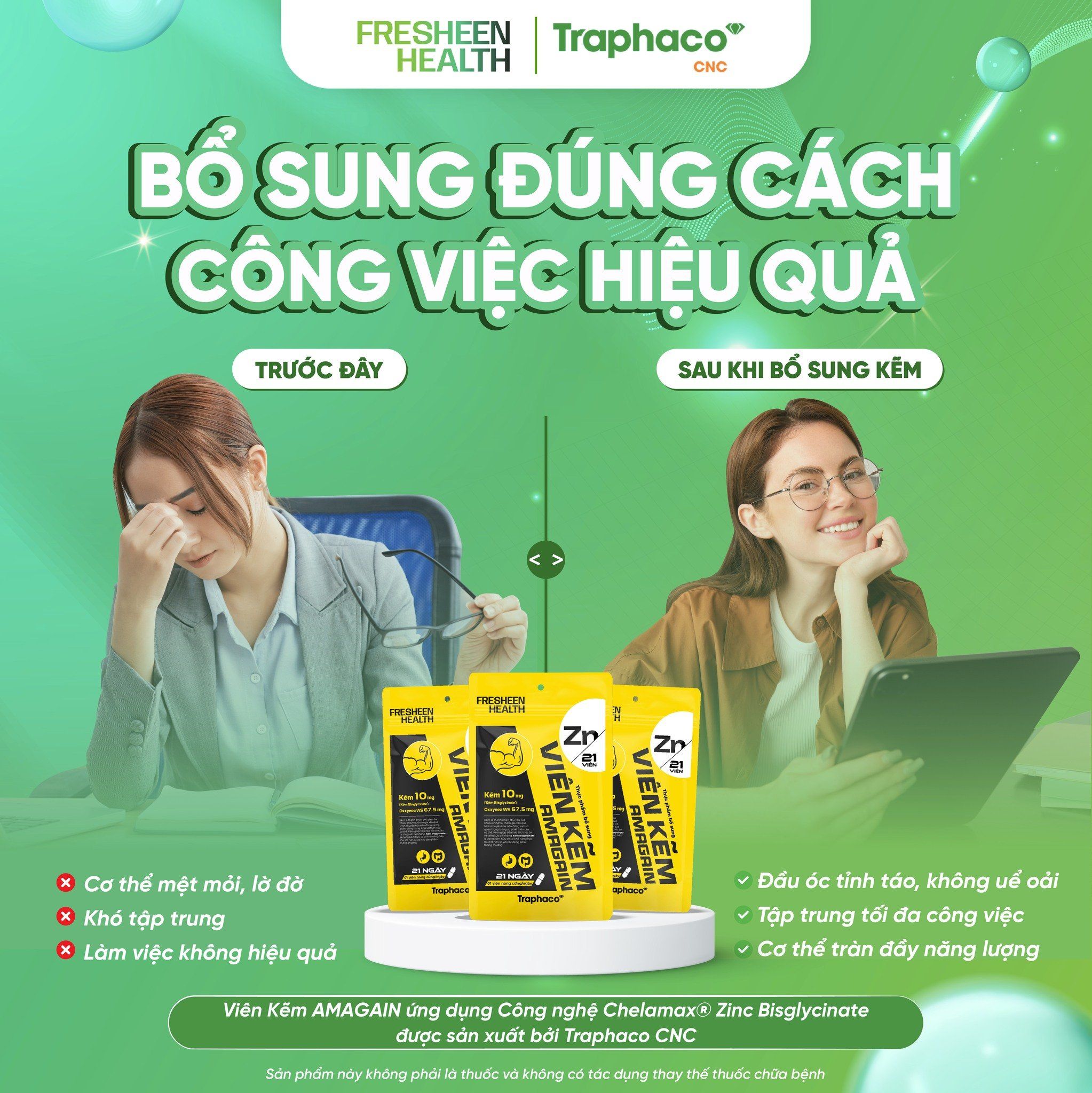 Để trải nghiệm trọn vẹn những lợi ích tuyệt vời này từ dạng kẽm hữu cơ thế hệ mới, hãy tìm hiểu ngay Viên kẽm Amagain với thành phần Chelamax™ Zinc Bisglycinate cao cấp, được sản xuất bởi Traphaco CNC. Đây là một sự đầu tư thông minh cho sức khỏe dài lâu của bạn!
