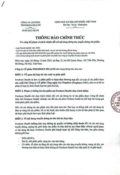 (Nội dung thông báo chi tiết được đính kèm tại văn bản chính thức có ký tên, đóng dấu của Fresheen Health.)