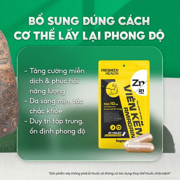 Nếu bạn đang tìm một sản phẩm chứa kẽm bisglycinate chính hãng, an toàn và hiệu quả, hãy chọn Viên Kẽm Amagain - sản xuất bởi Traphaco CNC, phân phối bởi Fresheen Health giải pháp tối ưu cho sức khỏe và sắc đẹp bền lâu.
